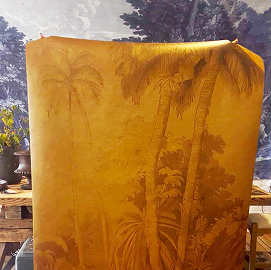 Introducing Arcadia in Citrine, printed on Papier in Metallic Gold, Fine and Dandy Co.’s newest wallcovering substrate and a study in quiet luxury. Crafted from a high-quality uncoated nonwoven, it has a fibrous, tactile surface that recalls handmade Japanese paper, softly illuminated by an elegant metallic gold finish. Lightweight yet refined at 10 oz., Papier brings a subtle shimmer and organic depth to any space.Beautiful and responsible, it’s PVC-free, breathable, eco-friendly, and Class A fire-rated, making it as thoughtful as it is elegant. Ideal for ceilings, low-traffic areas, or framed within paneling, Papier in Metallic Gold elevates the art of wallcovering with a luminous, understated glow.