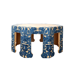 The Blue Dragon Octagonal Cocktail Table is a shining star in the Shanghai Loft collection from red egg. They engineer the pattern to the table parts, tattoo each part, then assemble and finish the piece so it comes together as a cohesive pattern. The blue coloration gives a nod to traditional blue and white porcelain while offering a fresh, quirky approach. It’s a great way to add, color, pattern, and a conversation piece to a room without always relying on fabric and wallpaper. We like to say tattoo the furniture; it won’t sag as it ages!