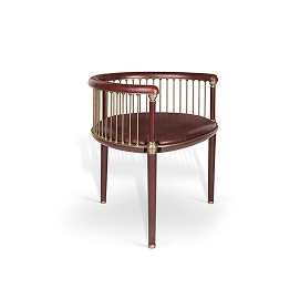 The Rouen Chair combines neoclassical symmetry with sculpted form. Featuring a crescent backrest and tapering legs, the chair is fully wrapped in leather, creating a rich contrast to the warm brass balusters framing it. The generously padded seat and slim vertical rods along the backrest and apron add to its refined design. Brass knurled caps and collars at key joints provide subtle ornamentation without overwhelming the silhouette. Designed for both style and comfort, the Rouen offers sculptural elegance, perfect for formal game settings, occasional seating, or quiet statement spaces.