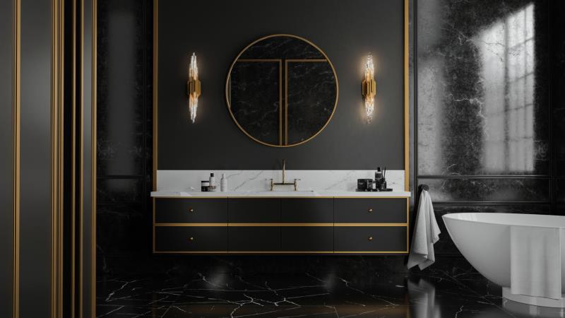Commanding and contemporary, Bergy transforms crystalline drama into an architectural statement. Faceted Optic Crystal clusters line a sweeping circular frame, creating a sharp, sculptural rhythm. Each stack enhances its fractured geometry, capturing and scattering LED light with striking intensity.