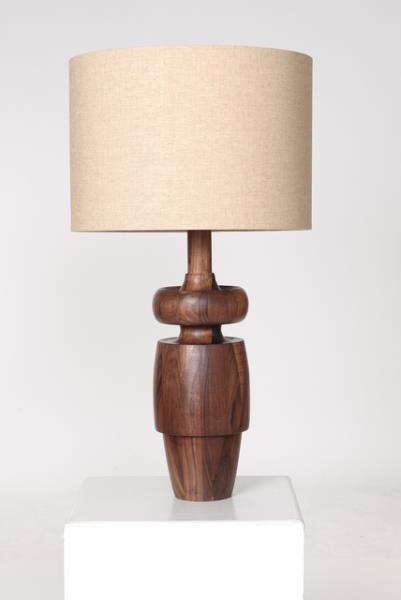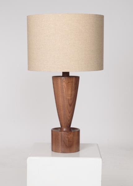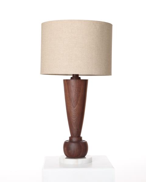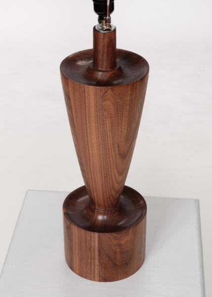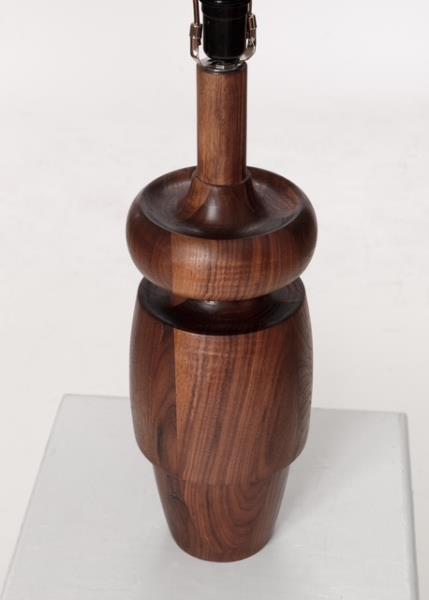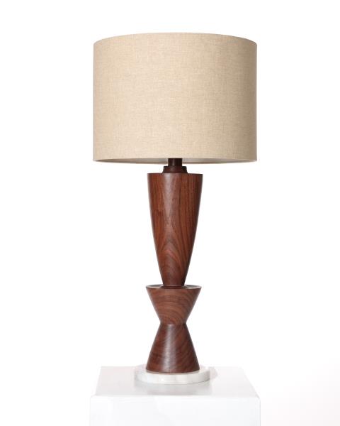 Articulated Turned Walnut Table Lamp with white marble base. Lathe turned by hand. Custom sizes and wood species available. Lamp shade not included.
