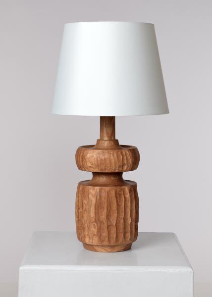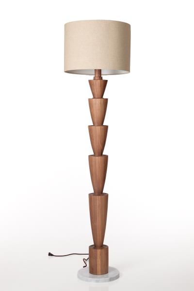 Articulated Turned Elm Floor Lamp with Marble Base