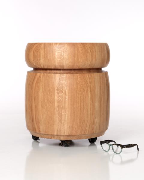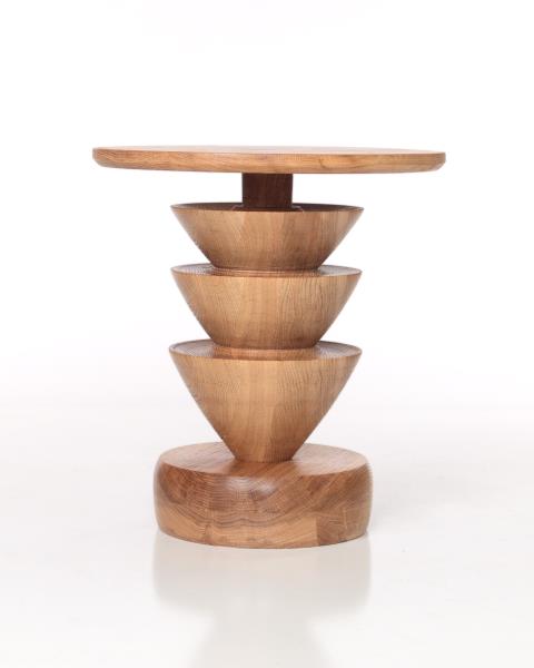 "Drift": Turned Walnut Mobile Stool and Side Table