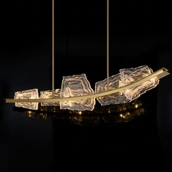 A masterpiece of handcrafted elegance, the Saber Chandelier blends modern design with artisanal detail. Its sleek, sculpted blades of light, showcase molten glass textures frozen in time.