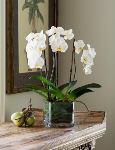 New Growth Designs announces the introduction of its latest orchid Flowerscape design.This lifelike arrangement includes multiple stems of the Phalaenopsis orchid, one of New Growth Design’s leading sellers feature a base of natural ebony small stones.