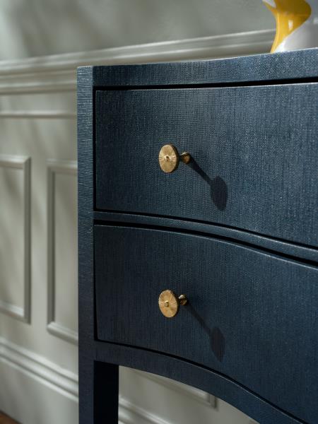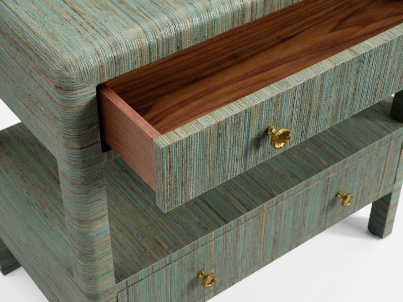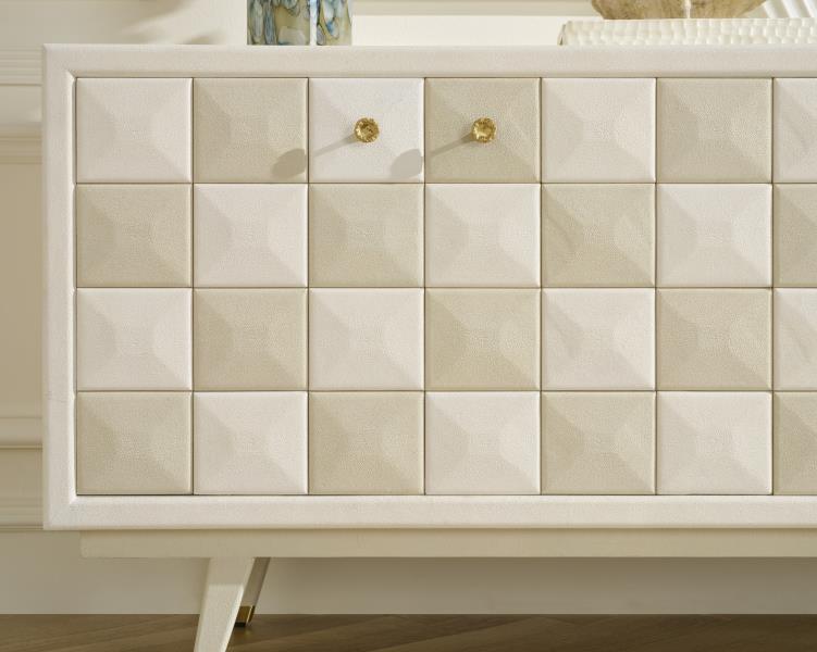 Brought to life with realistic faux shagreen in a classic, three-dimensional, two-toned checkered pattern, the mid-century modern Cornell is a versatile conversation piece.