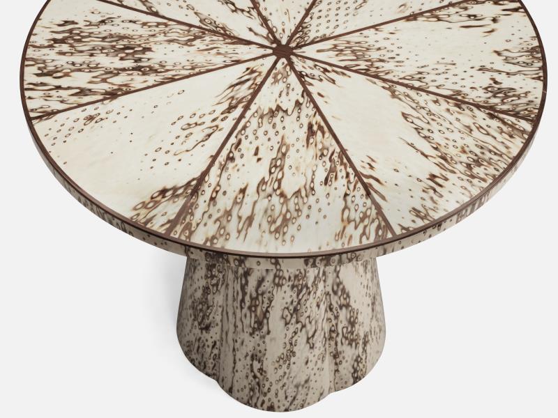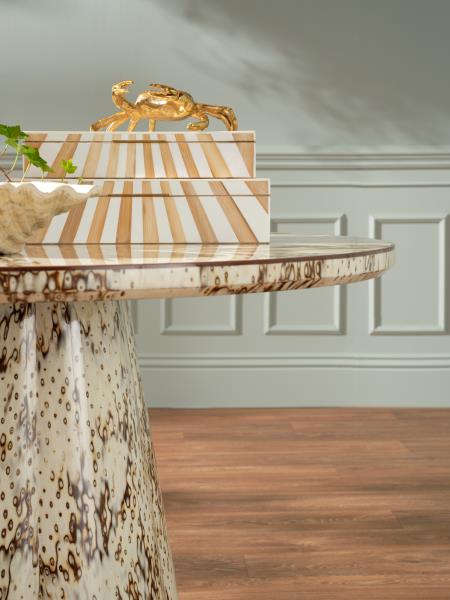 A study in expert craftsmanship, the Terina is an instant statement. Crafted upside down, artisans pour resin into a mold, carefully situate the organic-inspired metal base in the resin, and then allow the piece to cure. This meticulous process permanently fuses the tabletop and legs into a single, seamless form.