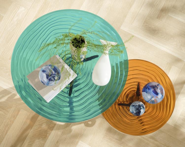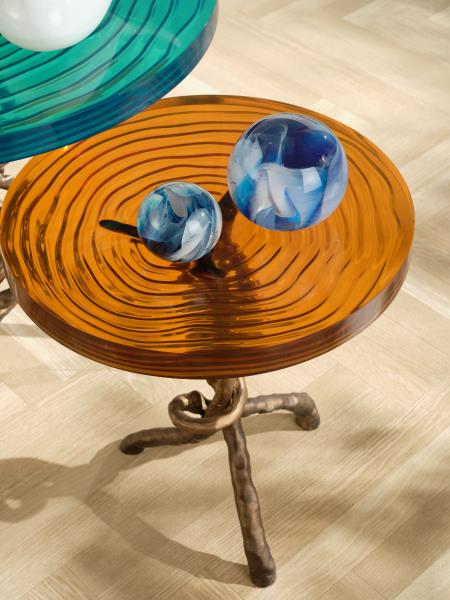 Terina Entry Table, Tropical Blue Translucent Resin/Antiqued Brass Iron