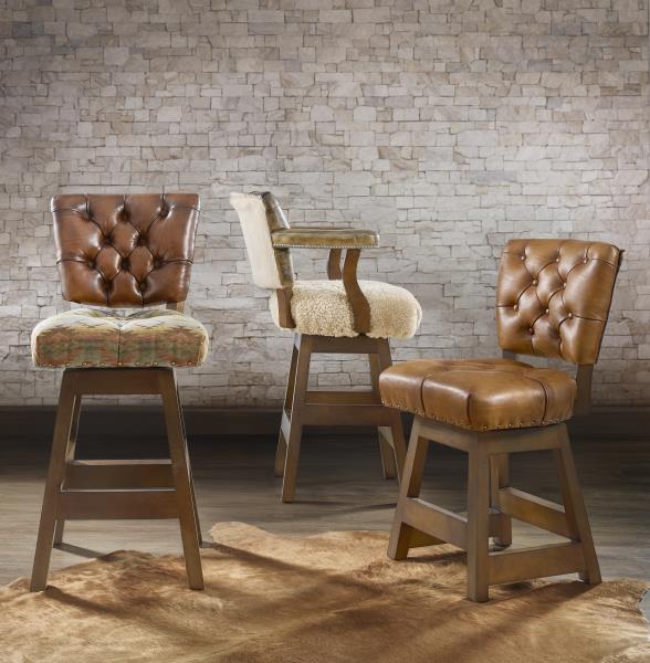 A refined blend of comfort and craftsmanship, the S1653-01 Swivel Chair features comfortable seating wrapped in rich, hand-tailored leather. Subtle tufting and precise stitching highlight its artisan construction, while the swivel base adds effortless function.
