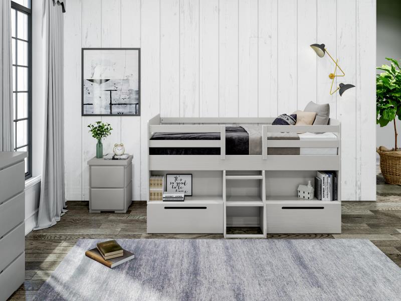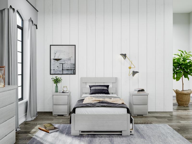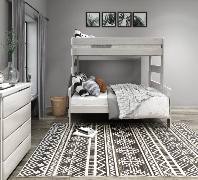 Maxwood Premiers New “Rugged” Range across Youth & Adult Categories: This newest collection combines on-trend designs & great value, with queen beds retailing as low as $229. Two of many finish options, rustic wood & white panel, beds, bunks, lofts & case goods will be on display this spring market.