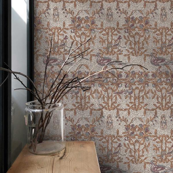 Inspired by handcrafted mosaic floors uncovered through time, Strata Mosaic Tile peel-and-stick wallpaper, from Tempaper & Co. and Jeremiah Brent, is saturated with cultured beauty for maximum visual intrigue.